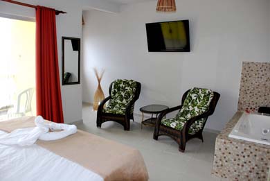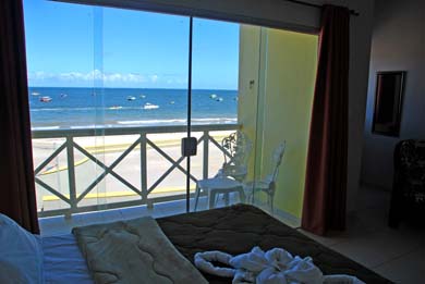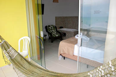 As suítes podem ter vista frente mar, lateral ou jardim interno.
